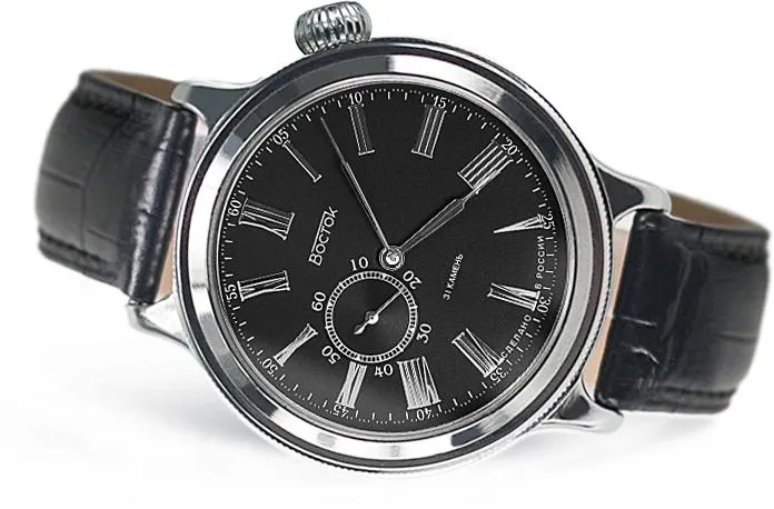 Мужские наручные часы Восток Ретро К-43 550095. Механические с ручным подзаводом. Корпус изготовлен из высококачественной нержавеющей стали 316L с высокими антикоррозийными свойствами. Ремешок изготовлен из кожи. Прочное, устойчивое к царапинам минеральное стекло защищает часы от повреждений. Часы являются водонепроницаемыми до 3 Бар. Цвет корпуса: Серебристый. Цвет циферблата: Черный. Ширина (с заводной головкой): 44мм. Толщина: 12мм. Гарантия: 1 год.