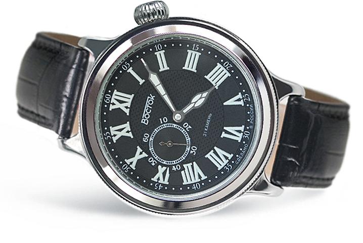 Мужские наручные часы Восток Ретро К-43 55032Б. Механические с ручным подзаводом. Корпус изготовлен из высококачественной нержавеющей стали 316L с высокими антикоррозийными свойствами. На стрелки и отметки нанесен светонакопительный состав, благодаря этому считывать информацию с циферблата возможно и в темноте. Ремешок изготовлен из кожи. Прочное, устойчивое к царапинам минеральное стекло защищает часы от повреждений. Часы являются водонепроницаемыми до 3 Бар. Цвет корпуса: Серебристый. Цвет циферблата: Черный. Ширина (с заводной головкой): 44мм. Толщина: 12мм. Гарантия: 1 год.